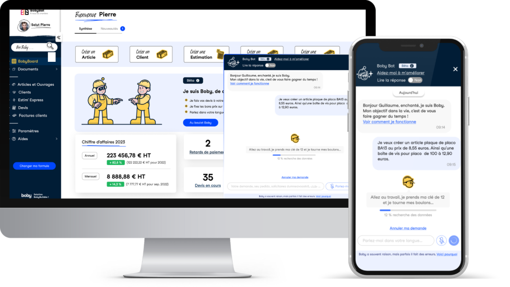 En France, où 13 % des employés du secteur étaient des collaborateurs étrangers en 2023(1), la barrière linguistique constituait le principal obstacle au recrutement pour 62 % des entreprises du bâtiment(2). En développant cet outil, Boby, A Cegid Company vise à faciliter les interactions entre les artisans et les clients, tout en proposant des devis exempts de fautes d’orthographes, au bon format et au bon taux de TVA. En plus d’accélérer la création de documents, l’assistant virtuel de Boby, A Cegid Company va permettre de dicter des devis conformes dans 15 langues, parmi lesquelles l’anglais, le portugais, le français, l’espagnol, l’italien, le mandarin, le turc, le vietnamien, l’allemand, le coréen, le grec, le hongrois, … À terme, il sera capable de comprendre et de répondre dans plus de 50 langues afin d’accompagner les artisans dont le français n’est pas la langue maternelle.
